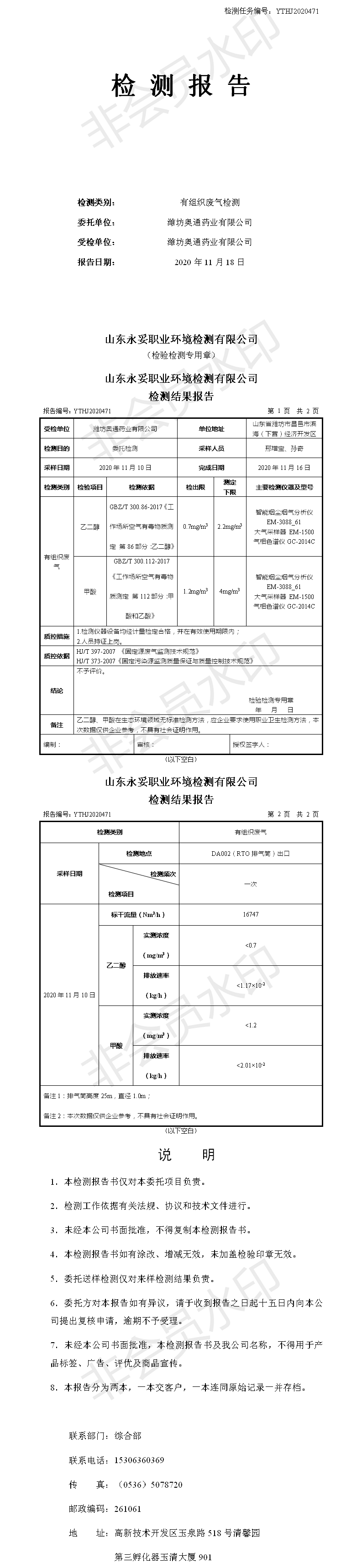 潍坊尊龙凯时人生就是赢药业有限公司十一月环境检测报告