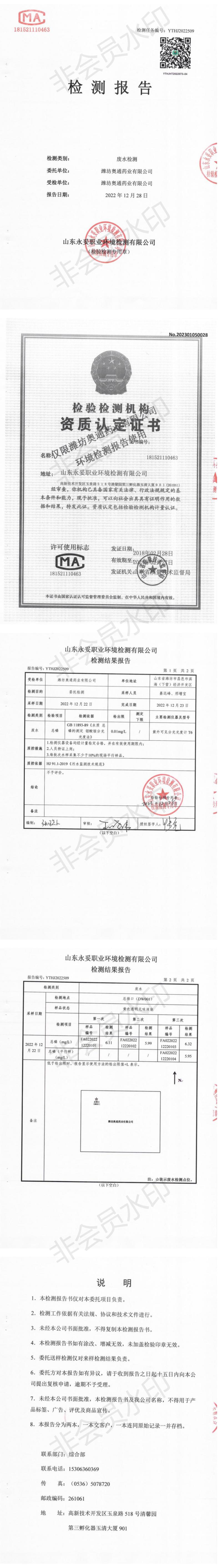 潍坊尊龙凯时人生就是赢药业有限公司十二月环境检测报告
