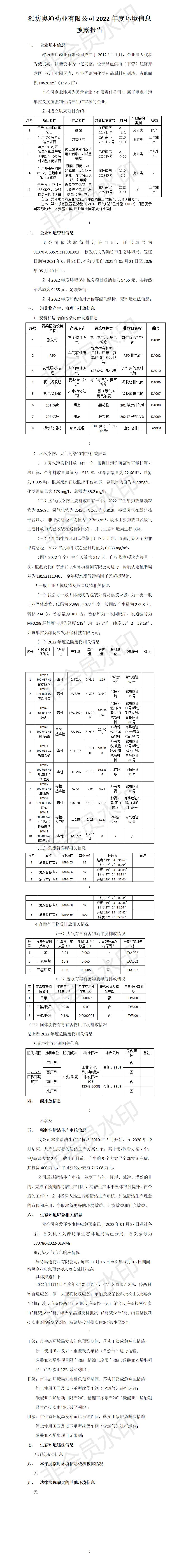 潍坊尊龙凯时人生就是赢药业有限公司2022年度环境信息披露报告