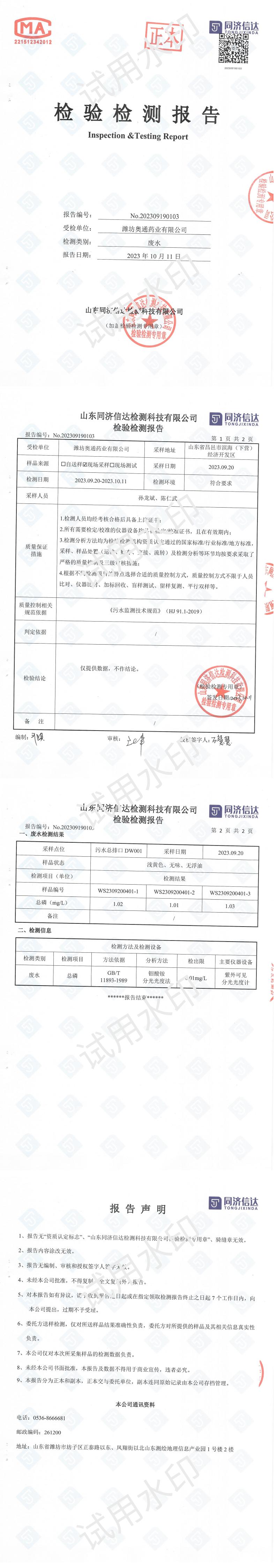 潍坊尊龙凯时人生就是赢药业有限公司九月环境检测报告